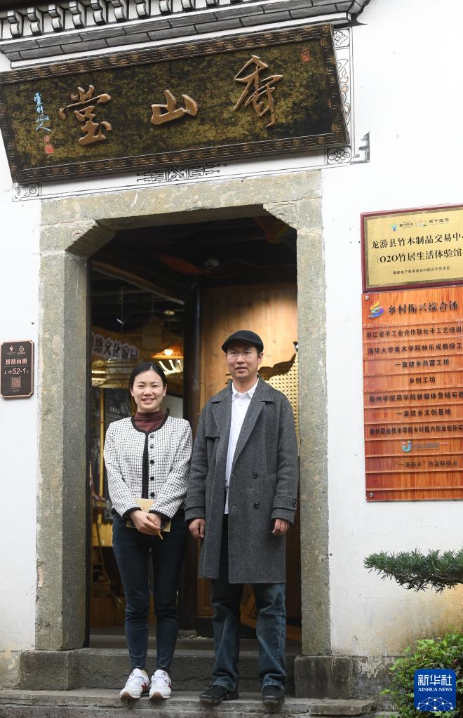 2018年,在杭州一個(gè)動(dòng)畫(huà)設計公司工作的青年姜鵬和妻子鄒霞辭去大城市的工作,回到老家龍游,在古村溪口租下一棟老房子進(jìn)行創(chuàng )業(yè)。夫妻倆發(fā)揮設計專(zhuān)長(cháng),為家鄉農產(chǎn)品代言。同時(shí),兩人又結合當地竹資源豐富的特點(diǎn),以“導師幫帶”模式,邀請專(zhuān)業(yè)院校老師和設計師共同開(kāi)發(fā)竹產(chǎn)品,帶動(dòng)周邊20余名工匠、170多戶(hù)村民參與產(chǎn)品制作。目前,他們的團隊共開(kāi)發(fā)了2600款竹產(chǎn)品,農特產(chǎn)年銷(xiāo)售額1500萬(wàn)元,參與村民戶(hù)均年增收1.8萬(wàn)元左右。