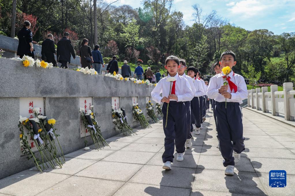 4月4日,少先隊員在四川省宜賓市烈士陵園緬懷革命先烈。