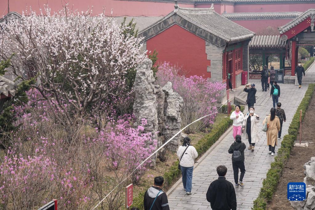 4月4日,游客在沈陽(yáng)故宮賞花。