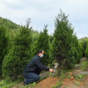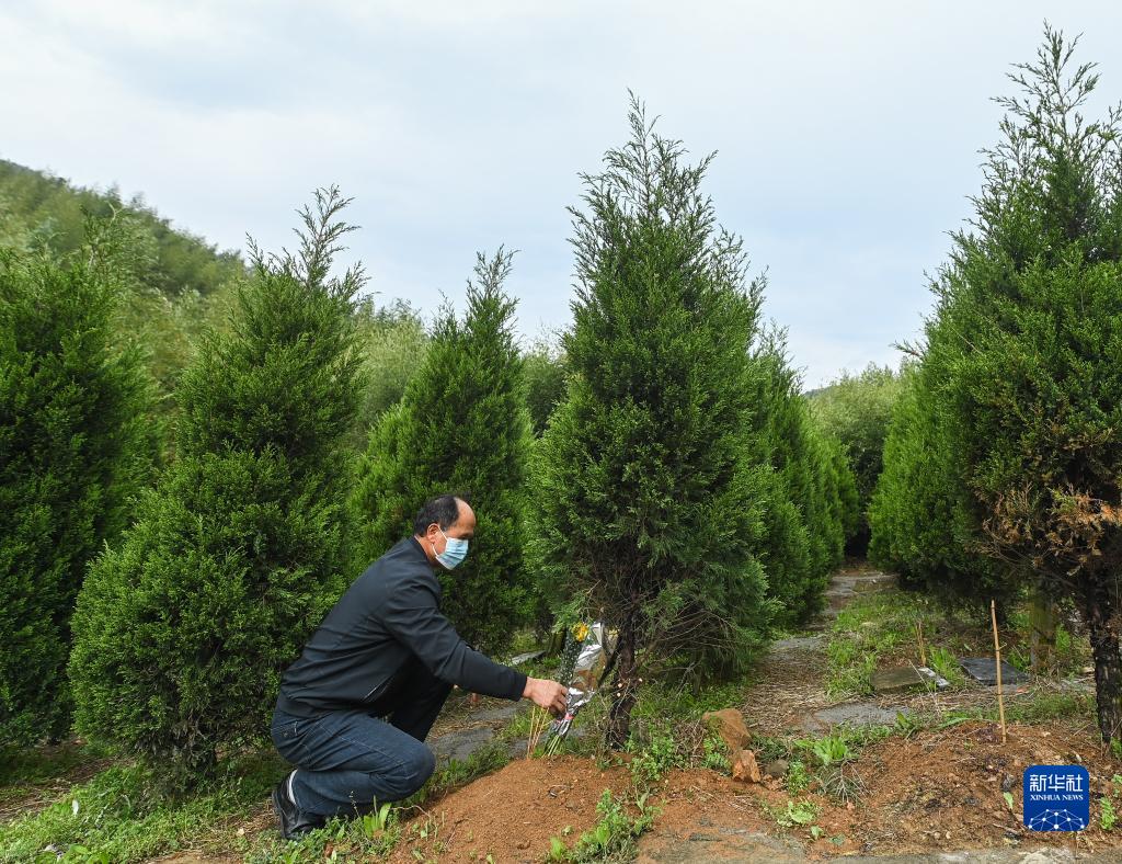 4月4日,湖州市吳興區道場(chǎng)鄉久安公墓的工作人員在生態(tài)樹(shù)葬區進(jìn)行“一墓一鮮花”清明代掃活動(dòng)。