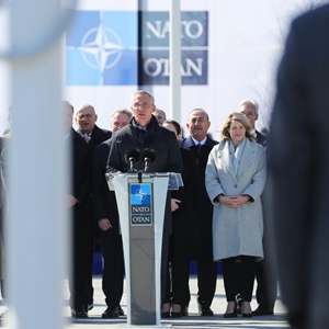 4月4日,在比利時(shí)布魯塞爾的北約總部,北約秘書(shū)長(cháng)斯托爾滕貝格在芬蘭加入北約儀式上發(fā)言。