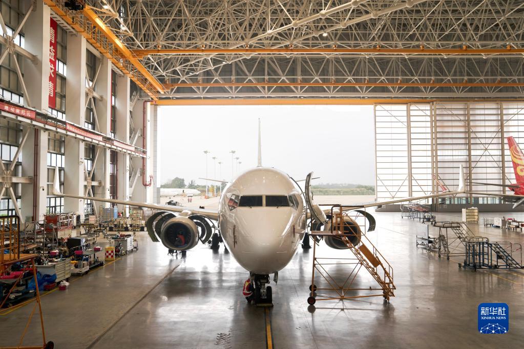 4月4日,在海南自貿港一站式飛機維修產(chǎn)業(yè)基地內,進(jìn)境飛機接受飛機發(fā)動(dòng)機、應急設備等多項檢修項目。