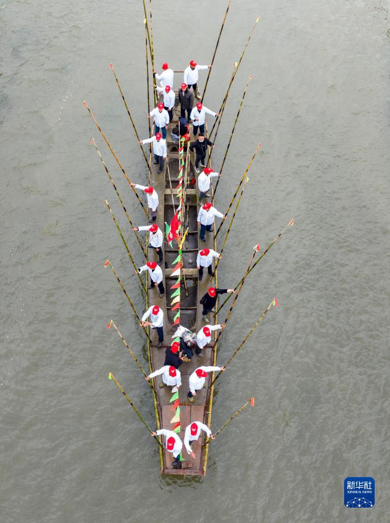 4月5日,選手駕船在茅山西大河參加茅山會(huì )船(無(wú)人機照片)。