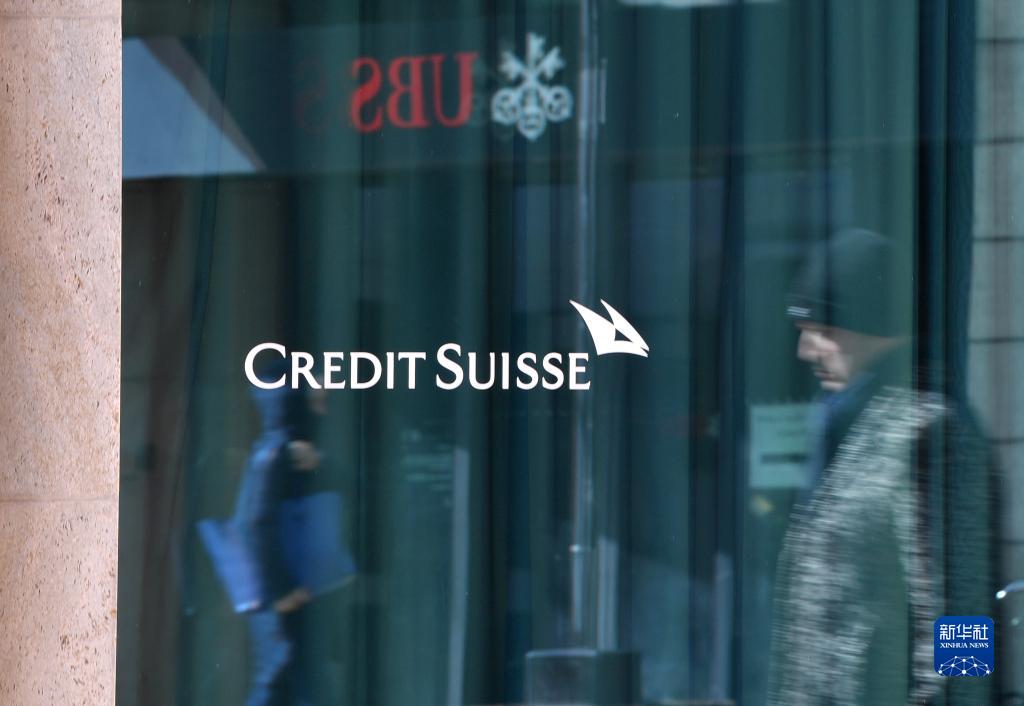 4月4日,在瑞士日內瓦,人們走過(guò)瑞士信貸銀行大樓。