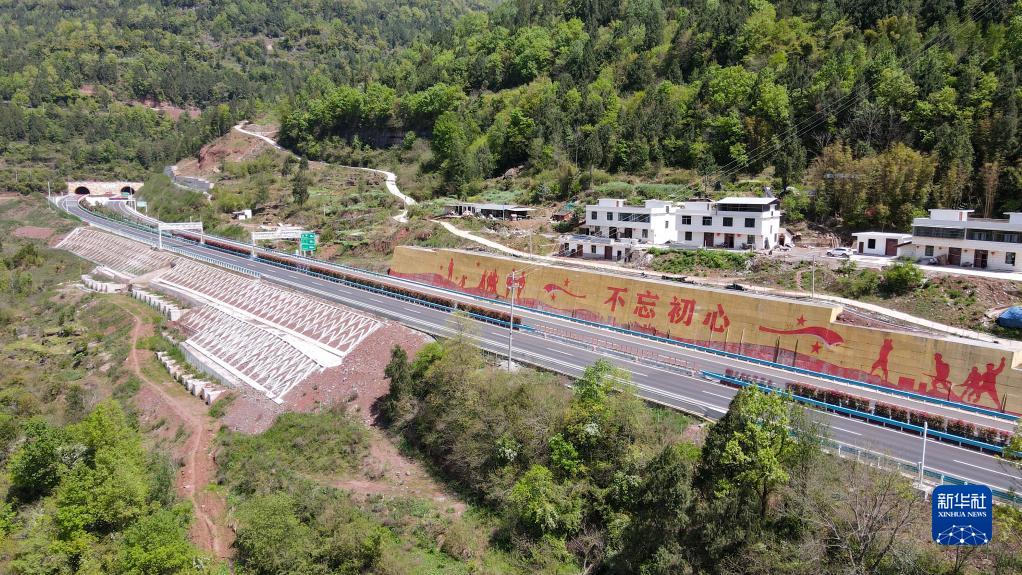 這是4月4日拍攝的鎮廣高速公路王坪至通江段局部(無(wú)人機照片)。