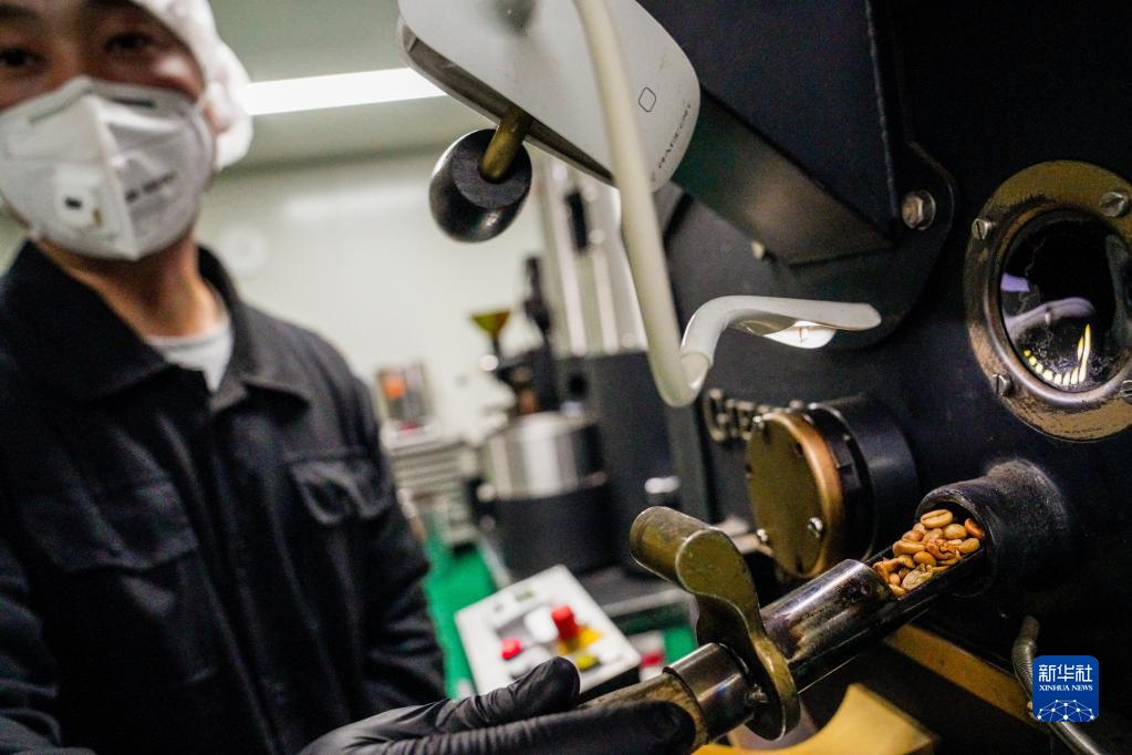 4月4日,姜京汰在咖啡烘焙間烘焙咖啡豆。