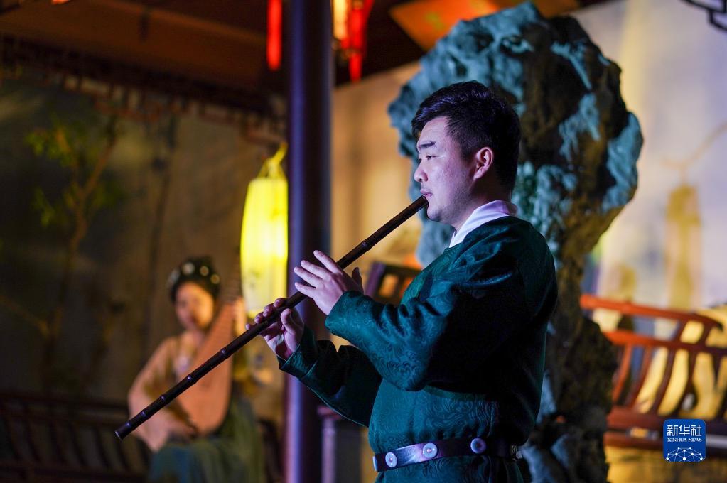 近年來(lái),江蘇省蘇州市網(wǎng)師園通過(guò)數字化展示手段,結合江南絲竹演奏、昆曲、評彈等傳統曲藝表演,不斷探索園林夜游發(fā)展新模式,將古典美學(xué)融入現代生活,為游客展示夜間的園林魅力。