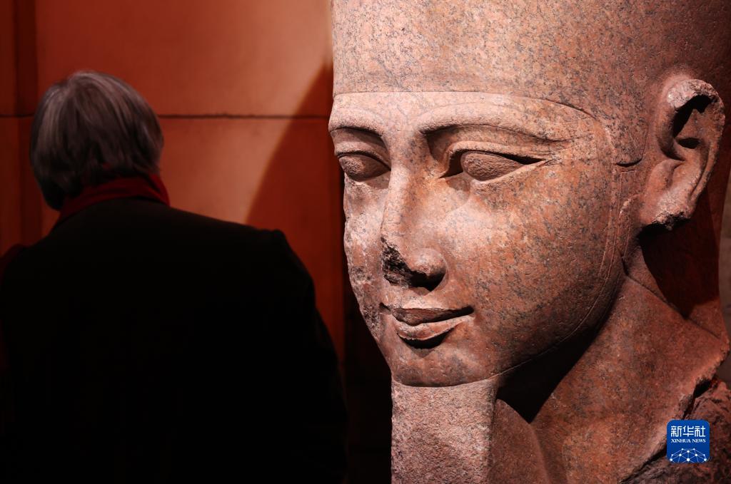 4月6日,媒體記者在法國巴黎參觀(guān)拉美西斯二世頭部雕像。