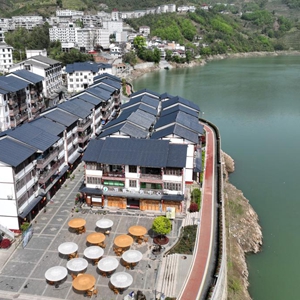 建設優(yōu)化后的紫陽(yáng)縣煥古鎮貢茶古鎮景區(4月6日攝,無(wú)人機照片)。