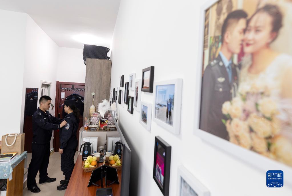 4月4日,崔洪武(左)幫助劉欣整理著(zhù)裝。新華社記者 費茂華 攝