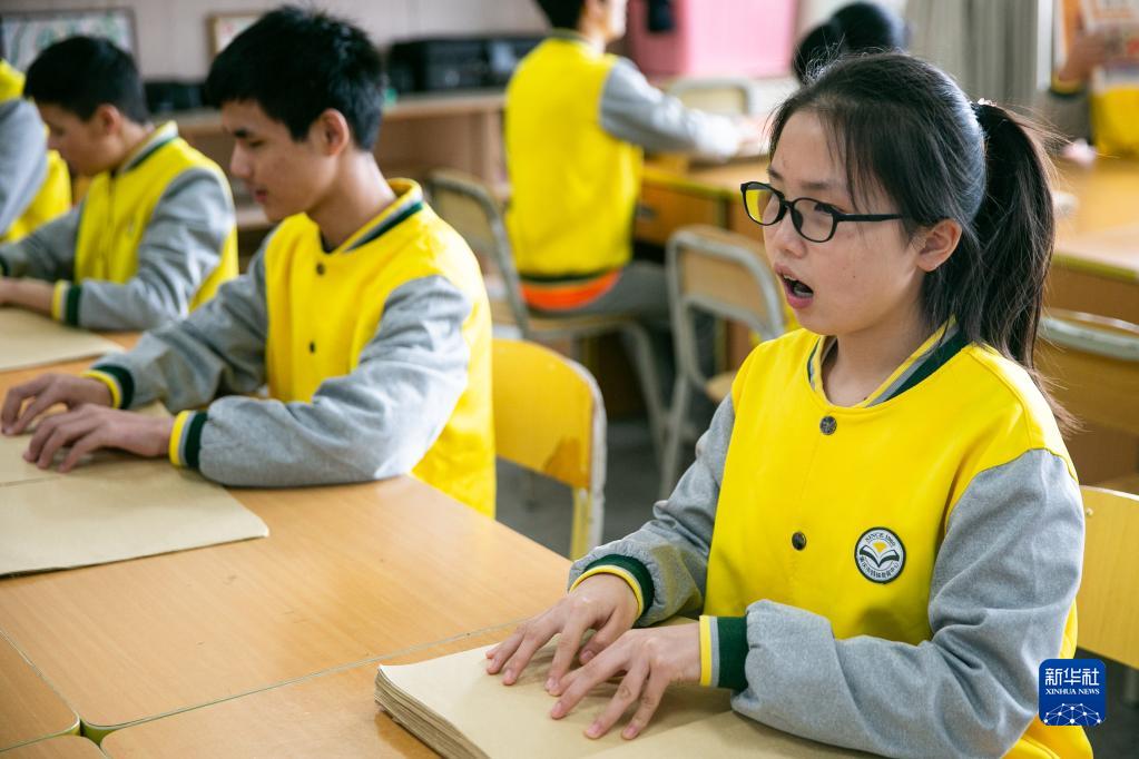 3月31日,重慶市特殊教育中心的視力障礙學(xué)生在教室內朗讀古詩(shī)。