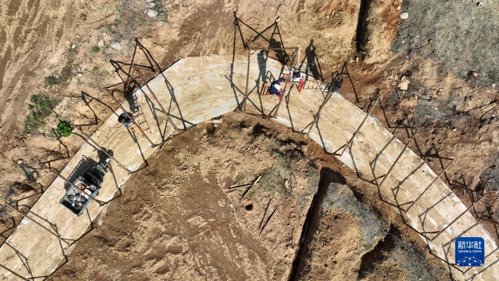 4月7日,在邢臺市信都區會(huì )寧鎮張爾莊村葫蘆生態(tài)種植園,村民在搭建葫蘆藤架(無(wú)人機照片)。