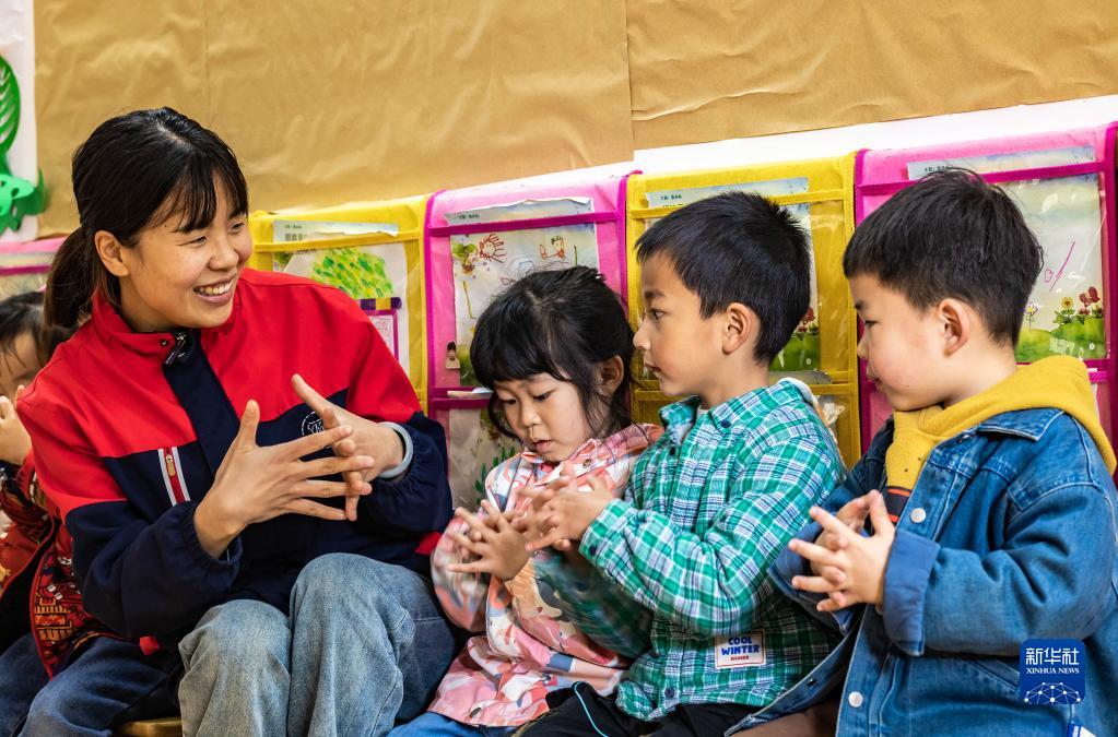 4月7日,在貴州省安順市西秀區一家幼兒園,小朋友在老師指導下學(xué)習“七步洗手法”。