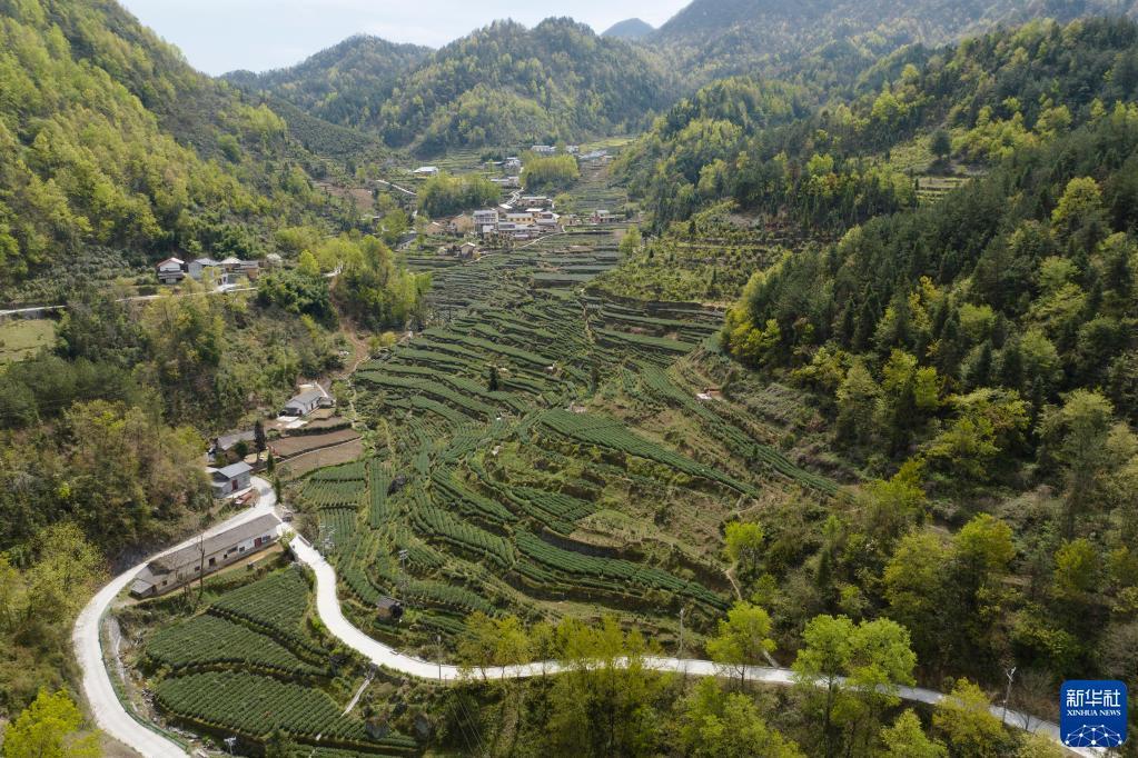 安康市漢濱區雙龍鎮一處茶園景色(3月30日攝,無(wú)人機照片)。