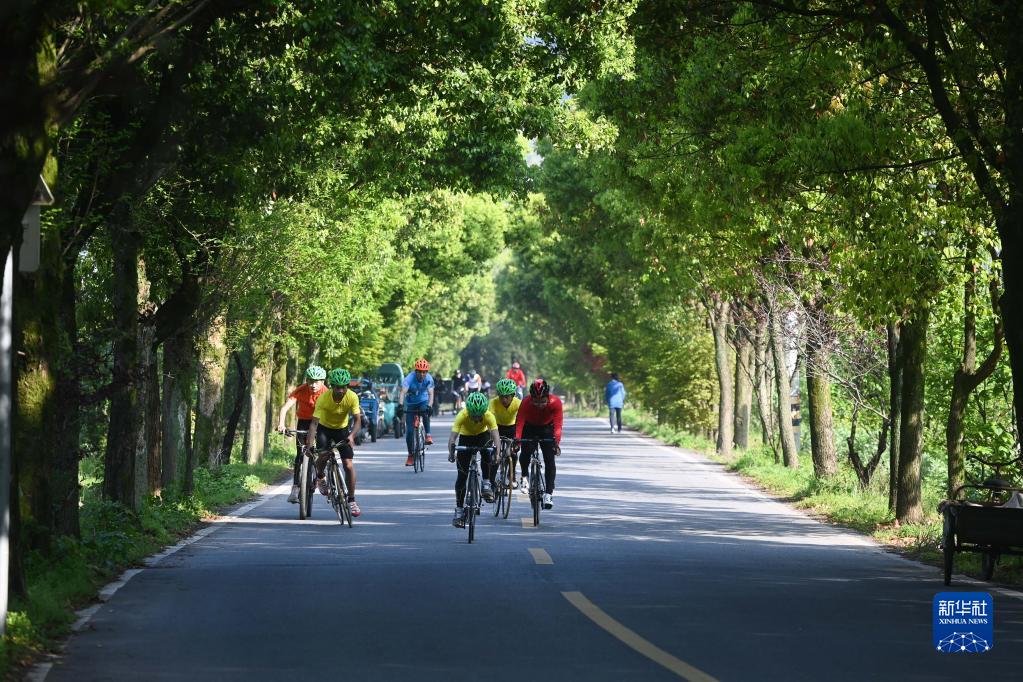 4月8日,騎行愛(ài)好者在浙江省諸暨市趙家鎮香榧國家森林公園參加健身騎行活動(dòng)。