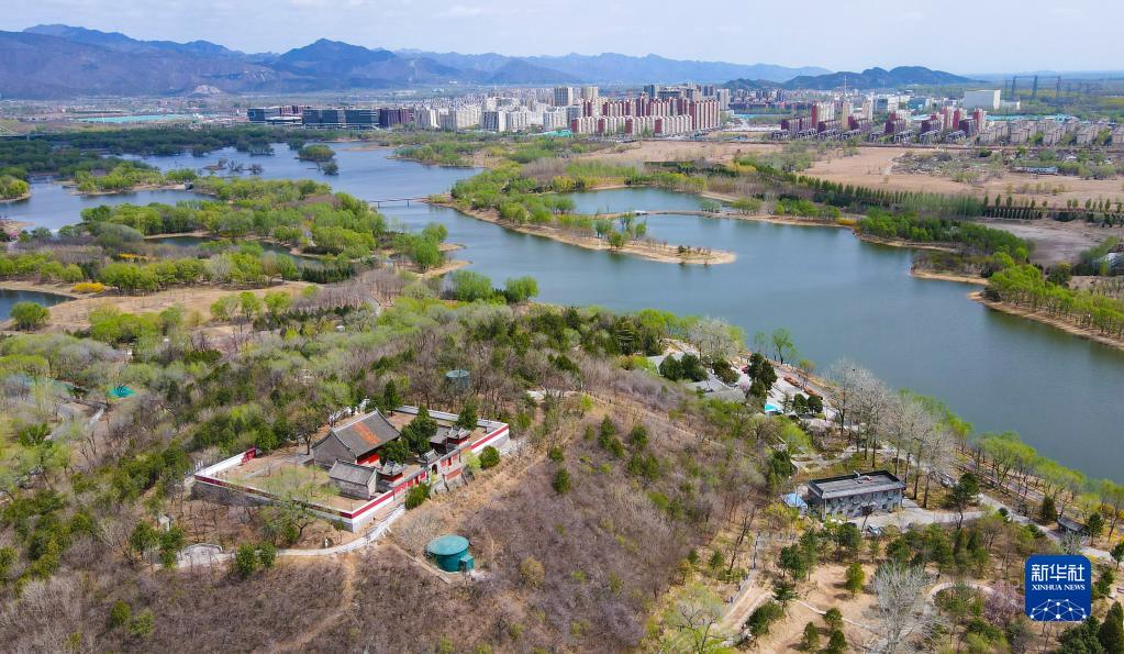 這是4月6日在北京市昌平區拍攝的大運河源頭遺址公園(無(wú)人機照片)。