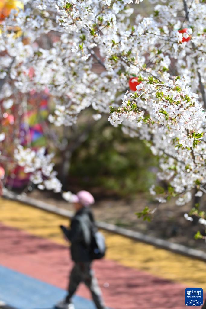 4月8日,游客在玉泉山城郊森林公園觀(guān)賞櫻花。