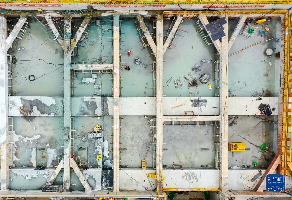 施工人員在廣州地鐵10號線(xiàn)濱江東路站清理工地(4月8日攝,無(wú)人機照片)。