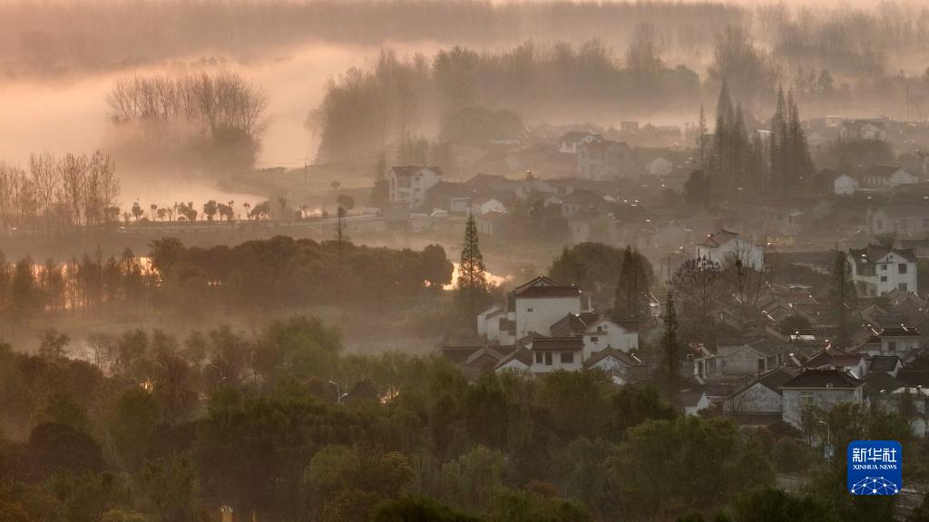 日出時(shí)分,江蘇省泰州市姜堰區的溱湖國家濕地公園及其周邊晨霧繚繞,構成一幅美麗的春晨畫(huà)卷。