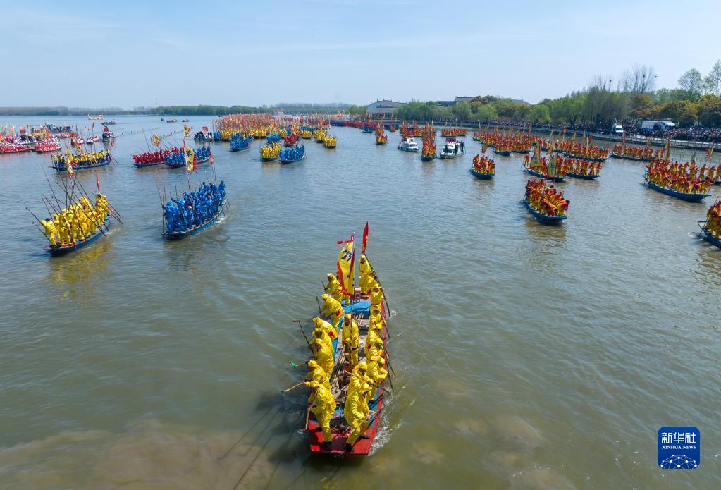 當日,2023年泰州姜堰溱潼會(huì )船節在江蘇省泰州市姜堰區溱湖國家濕地公園開(kāi)幕,數百條船只和萬(wàn)余名會(huì )船選手云集溱湖,演繹歷久彌新的民俗畫(huà)卷。
