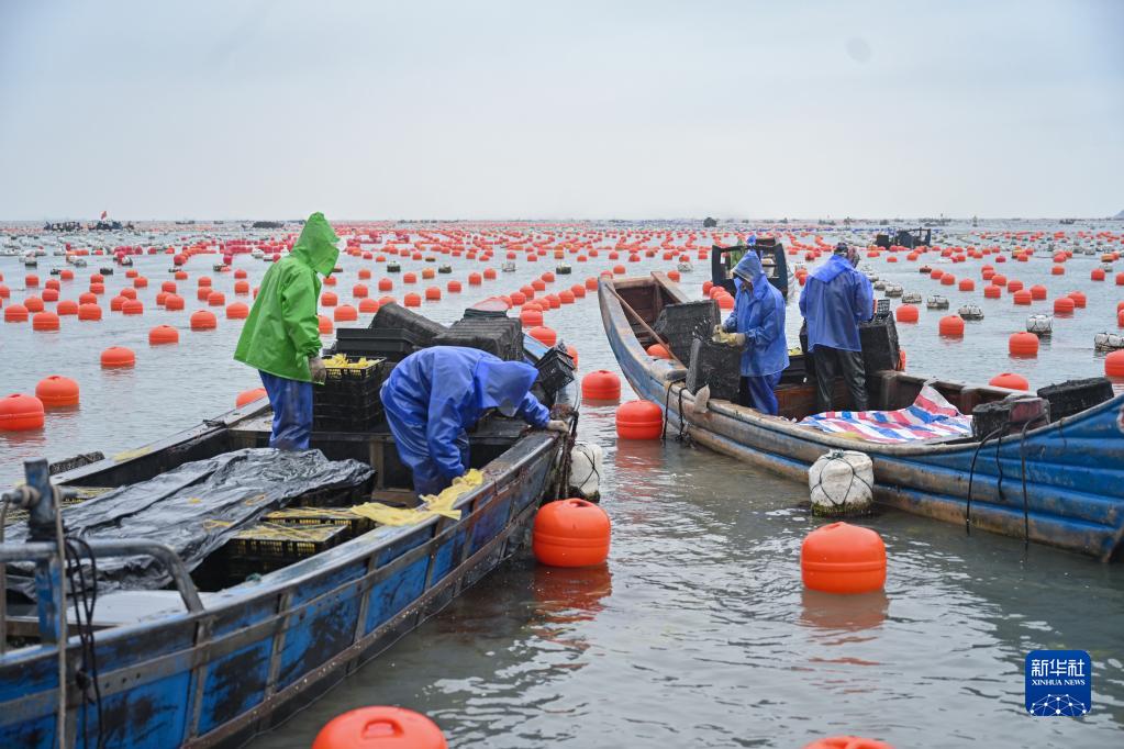當日,福建省連江縣近600名養殖戶(hù)將鮑魚(yú)苗投放至鮑魚(yú)籠中,掛養在大海里。福建省連江縣被譽(yù)為“中國鮑魚(yú)之鄉”,下宮鎮松蘆灣海域是該縣優(yōu)質(zhì)鮑魚(yú)主產(chǎn)區,占全縣鮑魚(yú)總產(chǎn)量的40%。每年清明節前后是松蘆灣海域養殖戶(hù)的鮑魚(yú)投苗季。