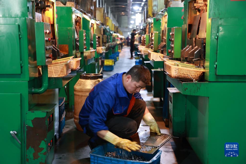 4月10日,搬遷群眾在獨山縣望城社區安置點(diǎn)附近的軸承產(chǎn)業(yè)園區內生產(chǎn)軸承。
