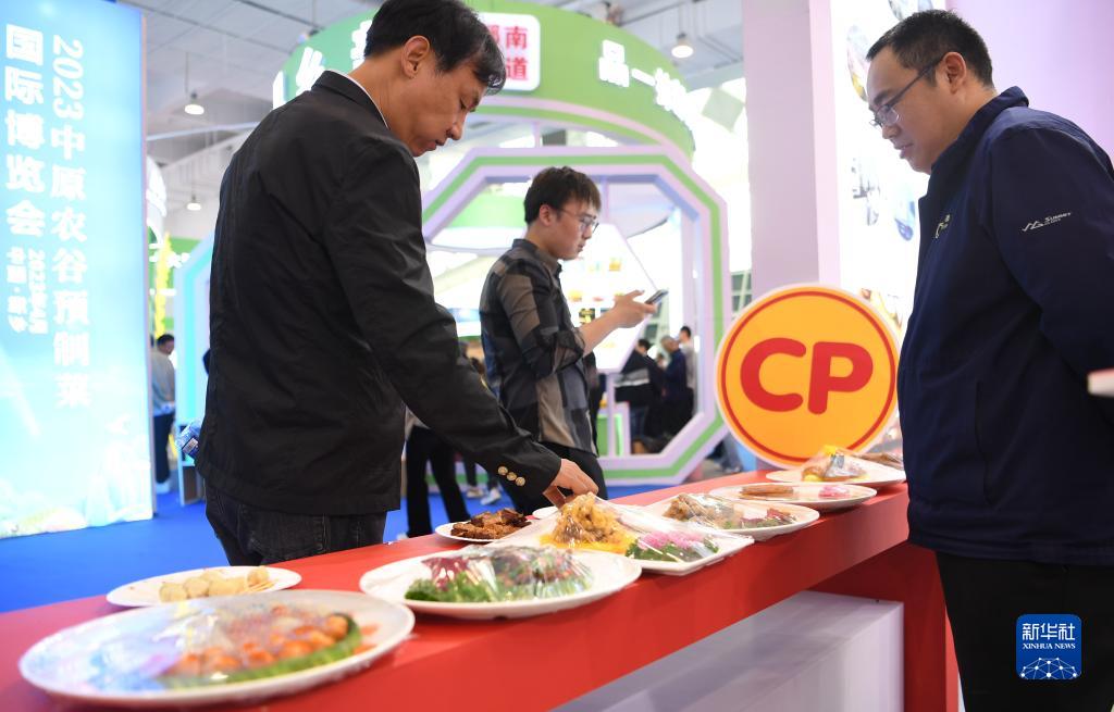 4月10日,參觀(guān)者在中原農谷預制菜國際博覽會(huì )上品嘗加工好的預制食品。