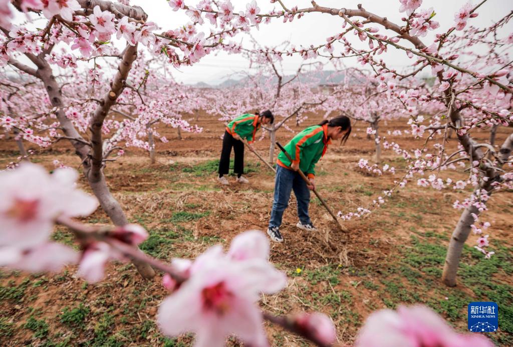 4月10日,河北省遵化市東舊寨鎮梁屯中心小學(xué)的學(xué)生在桃樹(shù)果園體驗鋤草勞動(dòng)。