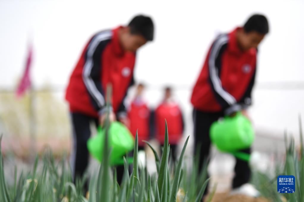 4月10日,學(xué)生在河北省張家口市懷來(lái)縣桑園中學(xué)勞動(dòng)實(shí)踐基地里體驗農耕。