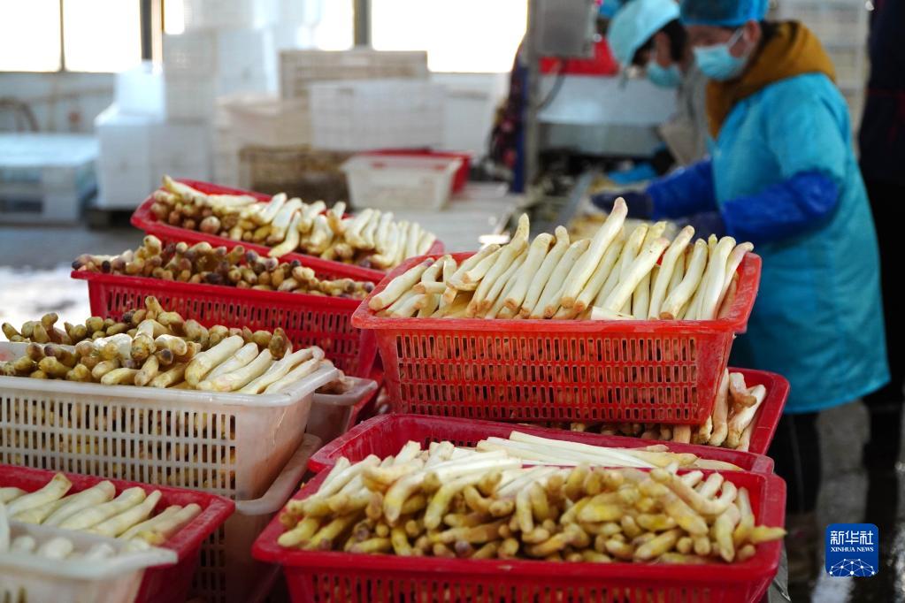 近日,山東省菏澤市單縣農戶(hù)種植的10萬(wàn)多畝蘆筍進(jìn)入收獲期,蘆筍種植戶(hù)們忙著(zhù)收獲新鮮的蘆筍,并對蘆筍進(jìn)行清洗、去皮等初加工。近年來(lái),當地根據市場(chǎng)需求,發(fā)展蘆筍產(chǎn)業(yè),帶動(dòng)村民就業(yè)增收,目前全縣蘆筍種植戶(hù)約3.7萬(wàn)戶(hù),年產(chǎn)值超過(guò)20億元。