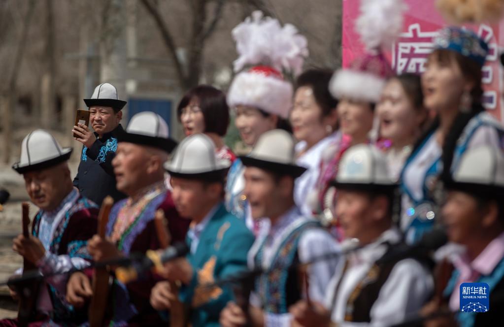 4月10日,在別迭里村,阿不都別克在等待上場(chǎng)演出時(shí)用手機拍攝其他藝人的演出。