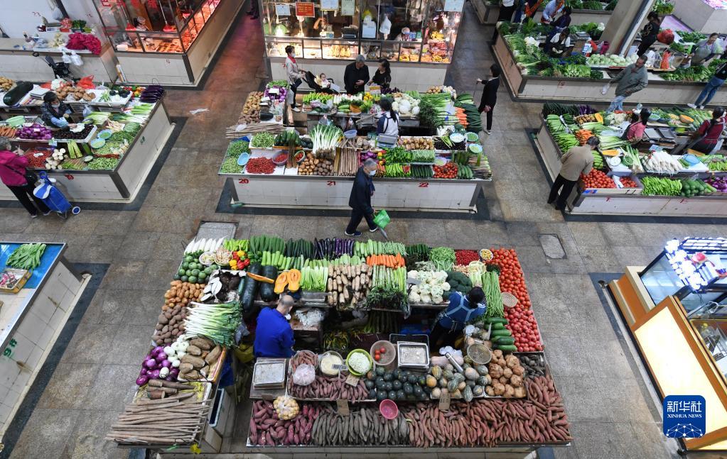 4月11日,在廣西南寧市一家農貿市場(chǎng),消費者選購蔬菜。