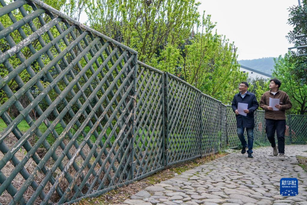 4月6日,彭銳(左)和助手在樹(shù)山村走訪(fǎng)調研。 新華社記者 李博 攝