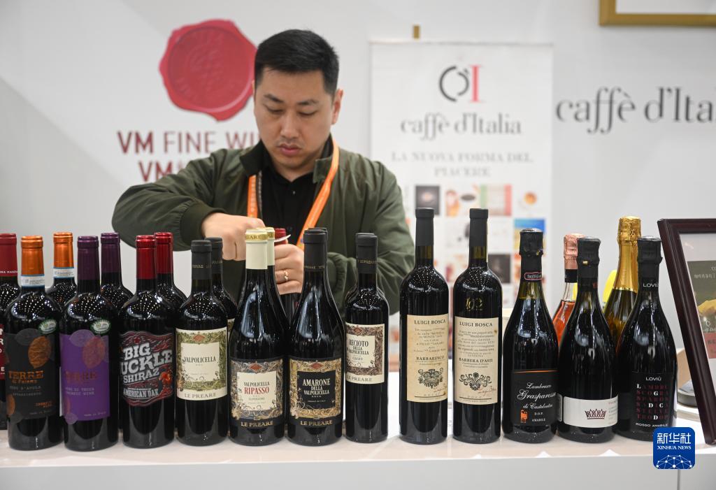 4月11日在消博會(huì )意大利企業(yè)館內拍攝的紅酒產(chǎn)品。