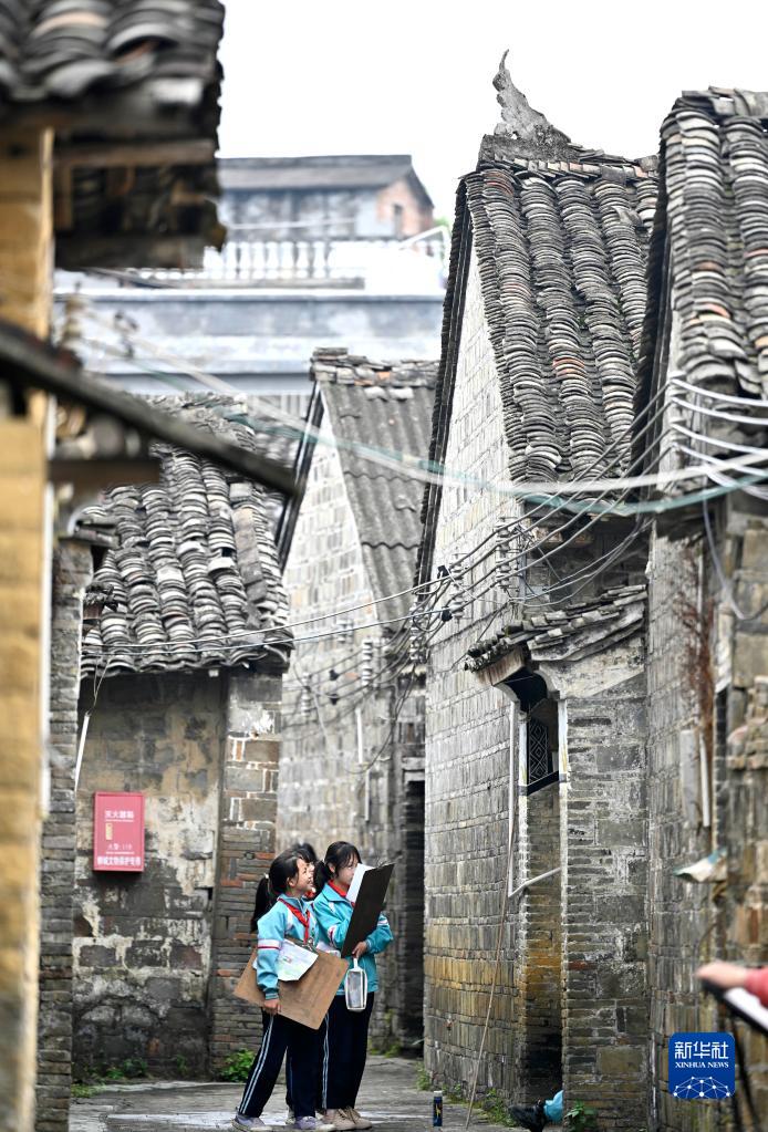 4月10日,學(xué)生在柳城縣古砦仫佬族鄉大戶(hù)村灘頭屯內寫(xiě)生。