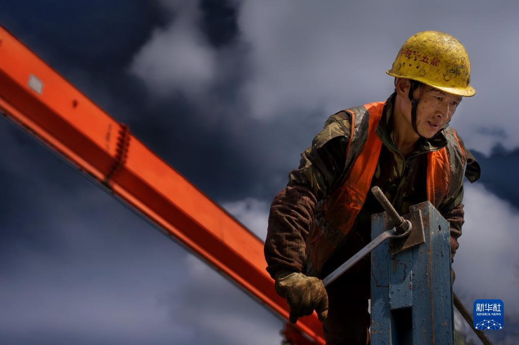 工人在梁開(kāi)高速梁平段施工現場(chǎng)作業(yè)(2023年3月26日攝)。
