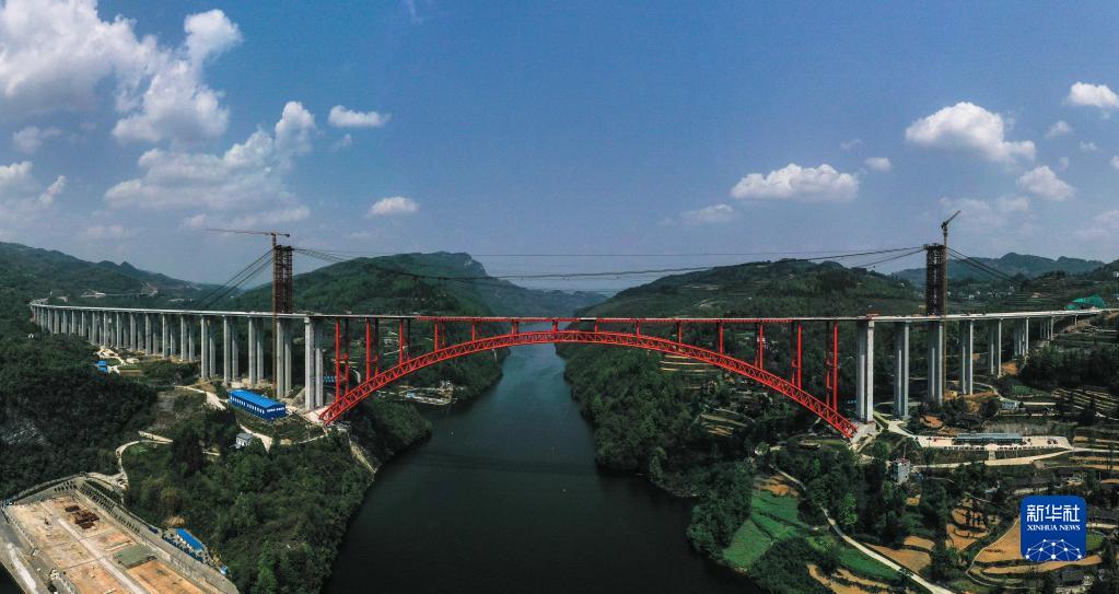 這是4月11日拍攝的德余高速烏江特大橋(無(wú)人機全景照片)。