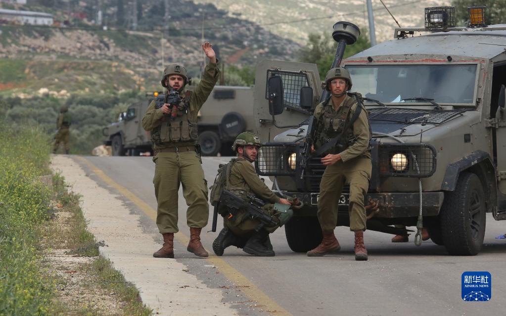 這是4月11日在納布盧斯交火現場(chǎng)附近拍攝的以色列士兵。