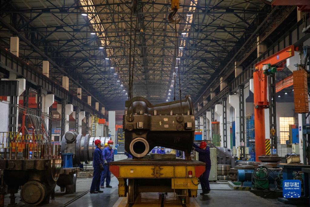 4月10日,工人在哈電集團哈爾濱汽輪機廠(chǎng)有限責任公司生產(chǎn)車(chē)間內進(jìn)行作業(yè)。