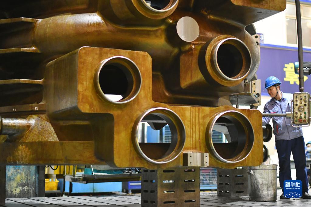 4月10日,工人在哈電集團哈爾濱汽輪機廠(chǎng)有限責任公司車(chē)間內生產(chǎn)作業(yè)。