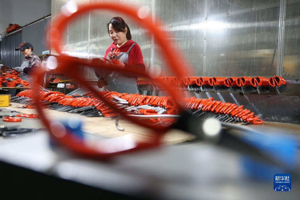 4月12日,在福建省寧德市柘榮縣硯山洋刀剪產(chǎn)業(yè)園一家企業(yè),工人整理生產(chǎn)好的剪刀。