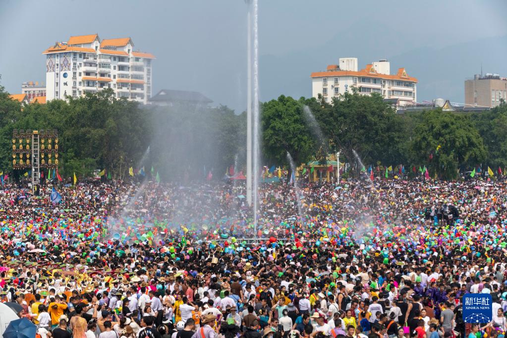 當日,云南省德宏傣族景頗族自治州芒市2023年潑水狂歡節開(kāi)幕,人們相互潑灑代表幸福、吉祥的清水,表達著(zhù)相互間的無(wú)限祝福。