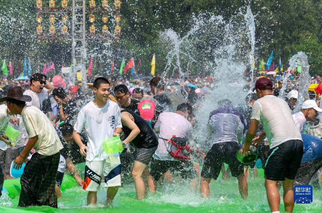 當日,云南省德宏傣族景頗族自治州芒市2023年潑水狂歡節開(kāi)幕,人們相互潑灑代表幸福、吉祥的清水,表達著(zhù)相互間的無(wú)限祝福。