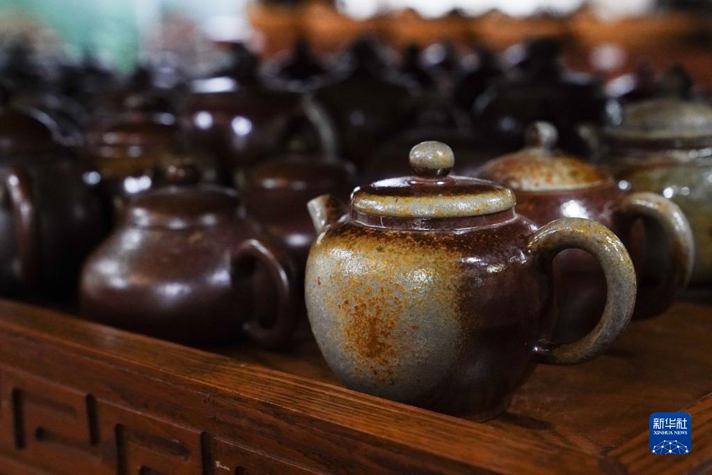 這是4月11日在廣西欽州市承坭齋拍攝的坭興陶制品。