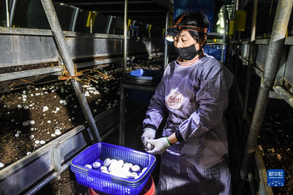 近日,在山東省泰安市岱岳區祝陽(yáng)鎮徐家汶村永樂(lè )食用菌科技產(chǎn)業(yè)園內,雙孢菇進(jìn)入采摘期,員工們在出菇房里采摘、分揀、裝籃。目前,園區食用菌種植面積已達300余畝,年產(chǎn)食用菌4000多噸,為100多名村民提供務(wù)工增收的渠道。