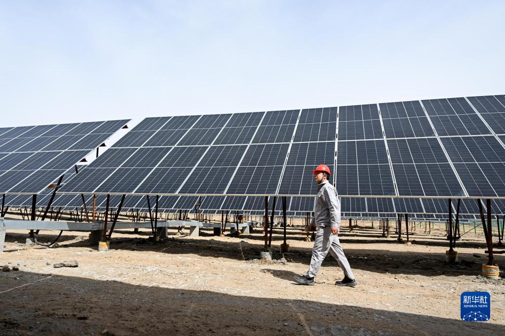 4月13日,在國家能源集團烏海能源公司黃白茨光儲電站,工人在巡檢光伏板。