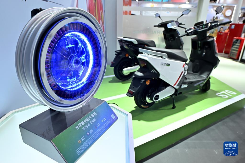 這是浙江展臺展示的綠源電動(dòng)車(chē)液冷機芯,它可以提高電機效率、增加電動(dòng)車(chē)續航(4月13日攝)。
