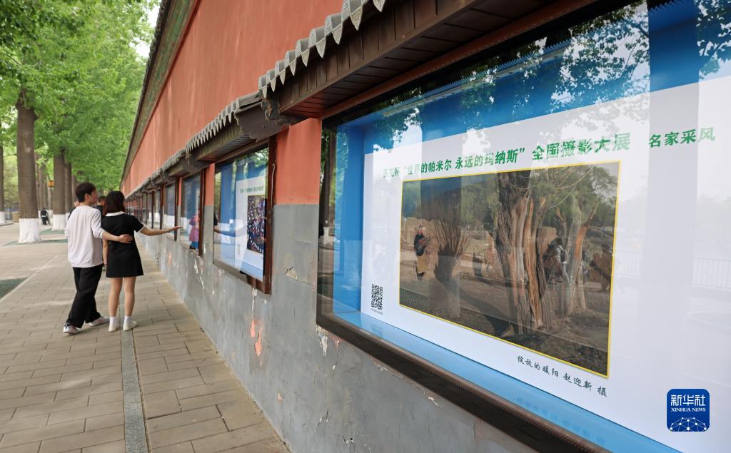 4月13日,觀(guān)眾在北京北海公園觀(guān)看蘇克杯“世界的帕米爾 永遠的瑪納斯”全國攝影大展。