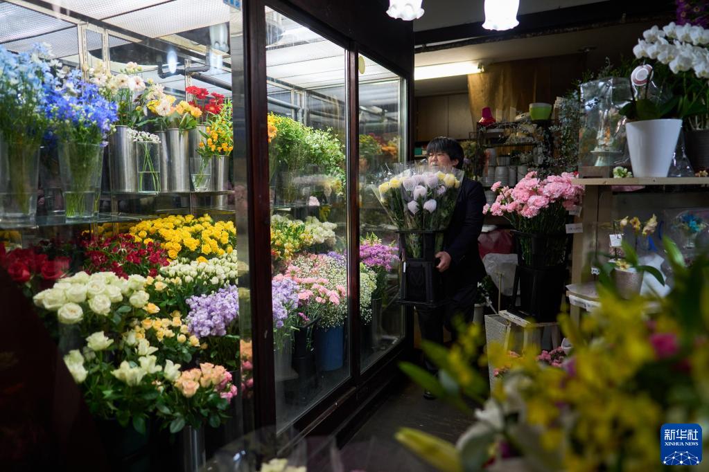 在日本千葉縣千葉市,小西武將從中國云南進(jìn)口的鮮花送到訂貨的花店(4月3日攝)。
