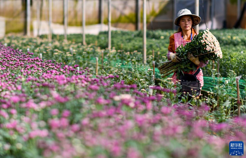 云南省開(kāi)遠市的花農項麗珍準備去包裝采摘的鮮花(3月22日攝)。